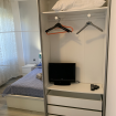L'appartamento è collocato al piano terra di una palazzina di due piani, in una tranquilla zona residenziale, lontano dal traffico cittadino ma comodo ai principali servizi e con buoni collegamenti al centro città. I grandi Parchi di Baggio e delle Cave, una bellissima oasi verde, sono a dieci minuti di passeggiata da casa. Il parcheggio in strada è libero, con l'auto si raggiungono comodamente le fiere milanesi. L'appartamento è completamente attrezzato per soggiorni di breve e medio periodo. L'appartamento è di 31 metri quadri, con cucina abitabile con zona pranzo, zona salotto con divano letto matrimoniale e tv, bagno completo con doccia e lavatrice e una stanza matrimoniale. La cucina è completamente attrezzata, inclusa la lavastoviglie.